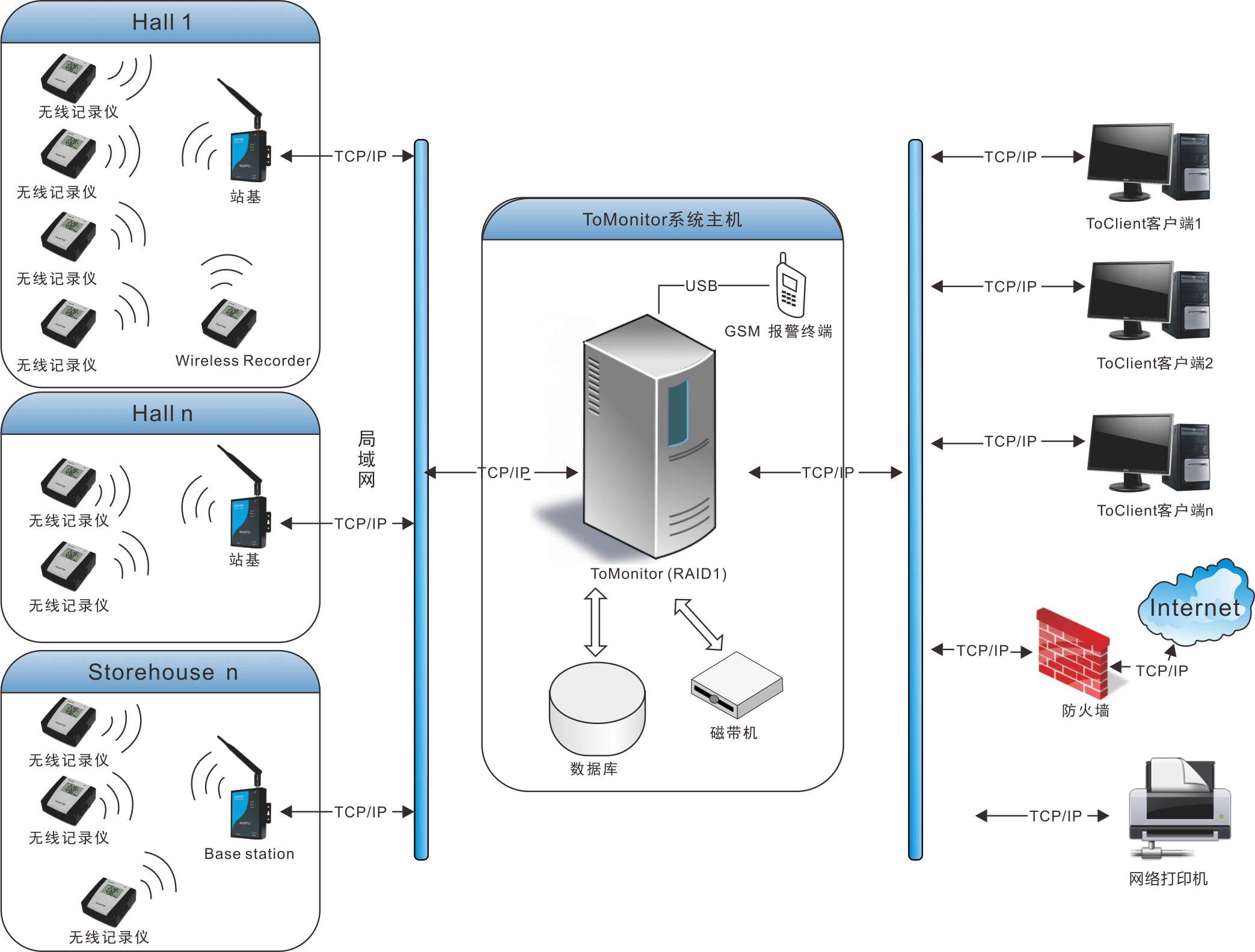 实现温湿度中央央监控和集中管理,广泛应用于农业研究、食品、医药、仓库、冷库、冰箱、机房、化工、气象、环保、电子、实验室等领域的温湿度监测,典型客户包括中国国家博物馆、国家电网公司、案馆、香港南洋烟草、上海味觉糖、华大基因研究院、江苏省农科院等知名单位。